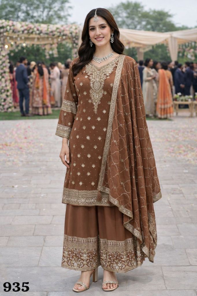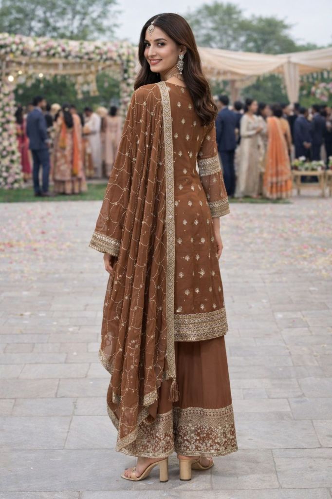 Fabric Description : Fabric :- Real Premium Georgette ( Heavy Fornt And Back Embroidered Sequence And Zarkan Top With Palazzo And Dupatta ) | Free Size Stitched