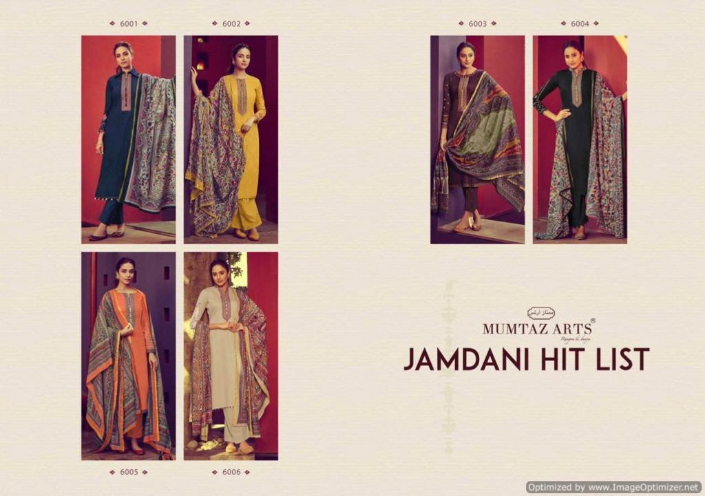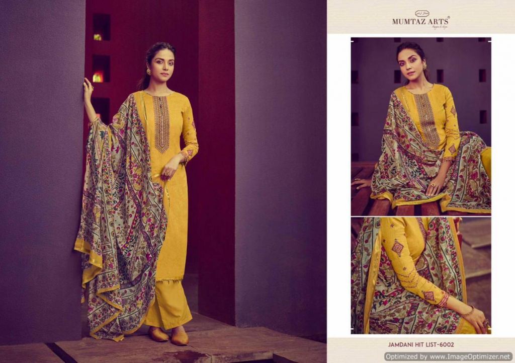 Mumtaz presents Jamdani Hit List Designer Dress Material,this catalog fabric is Pure Jam Satin with Digital Print and color combinations and designs are different.