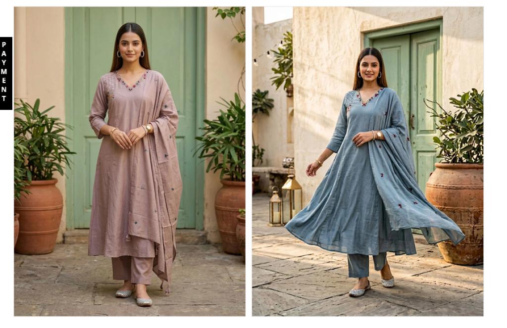 Fabric Description : Top/Bottom/Dupatta :- Pure Mul Mul Aline With lining And Hand Embroidery | Size Set :- ( 38 To 44 )
