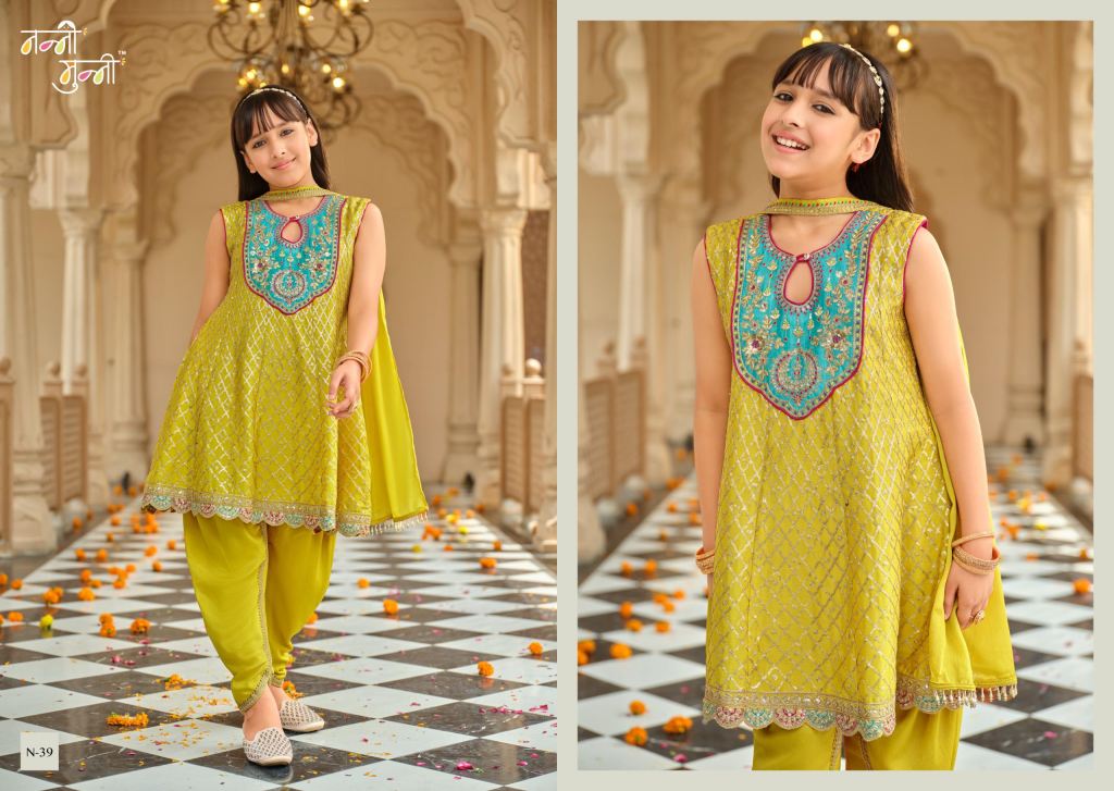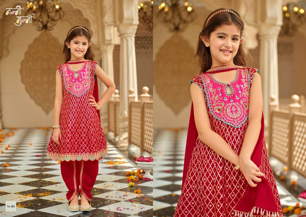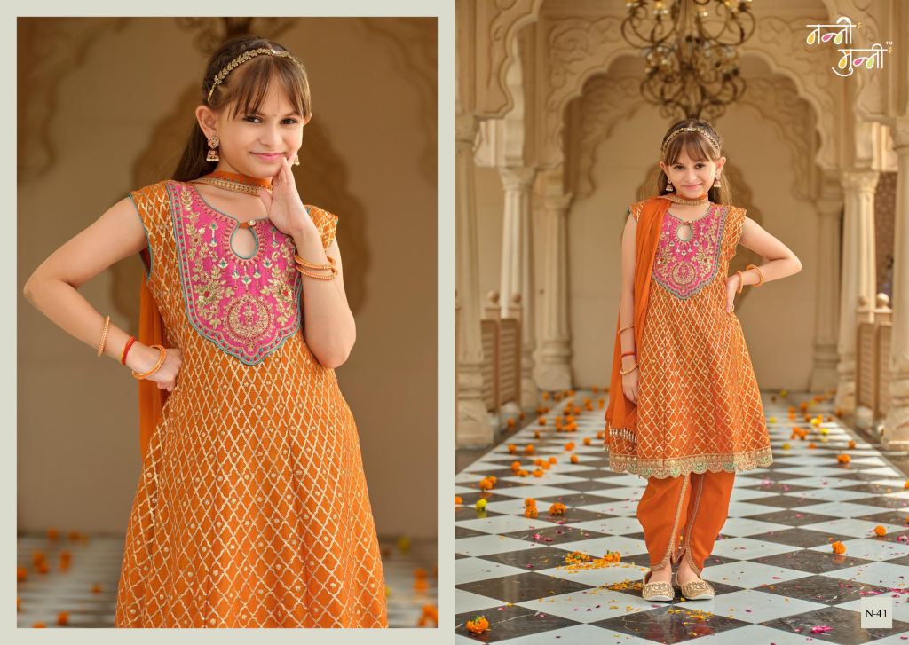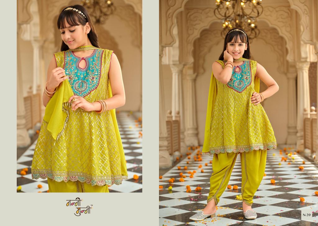 Nanni Munni Esha Chinon With Embroidery Work Top Dhoti And Dupatta Full Catalog