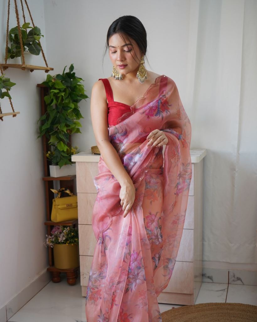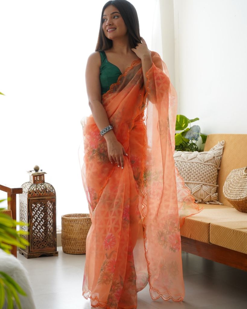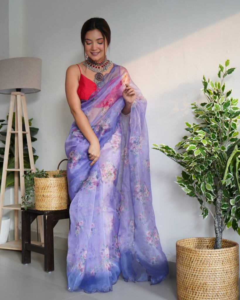 Buy Organza Sequence Digital Printed Latest Designer Sarees collection