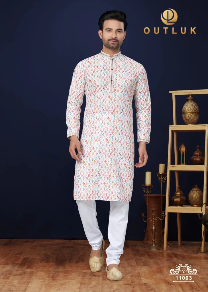 New Latest Outluk Present Lucknowi Vol 11 Printed Cotton Wedding Kurta With Pajama Collection