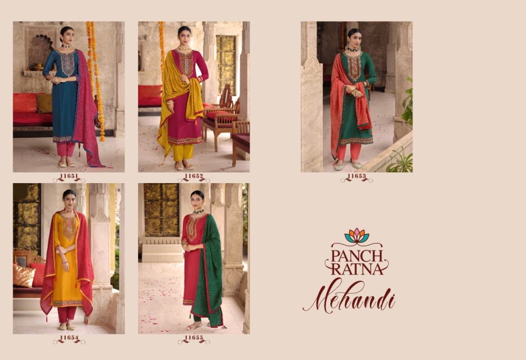 | NAME : | Panch Ratna Mehandi Designer Silk Ethnic Wear Dress Materials Catalog |