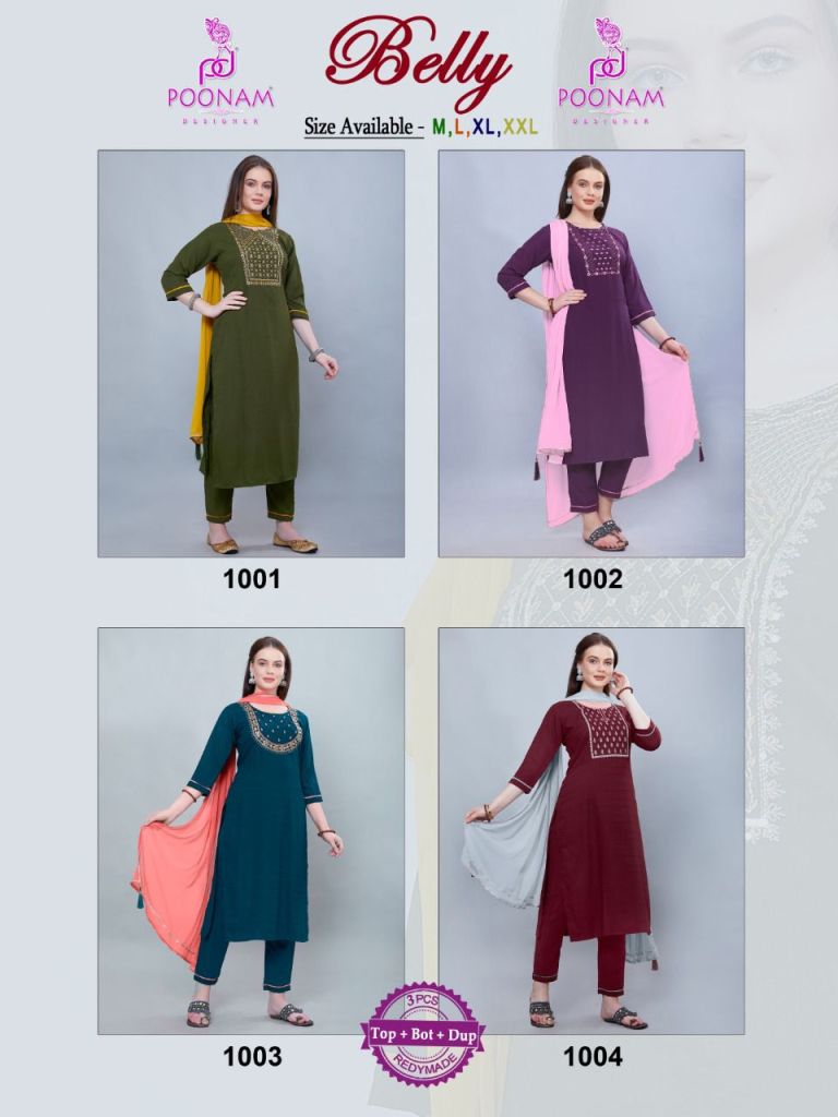 Buy Poonam Belly Fancy Kurti With Bottom Dupatta Collection.