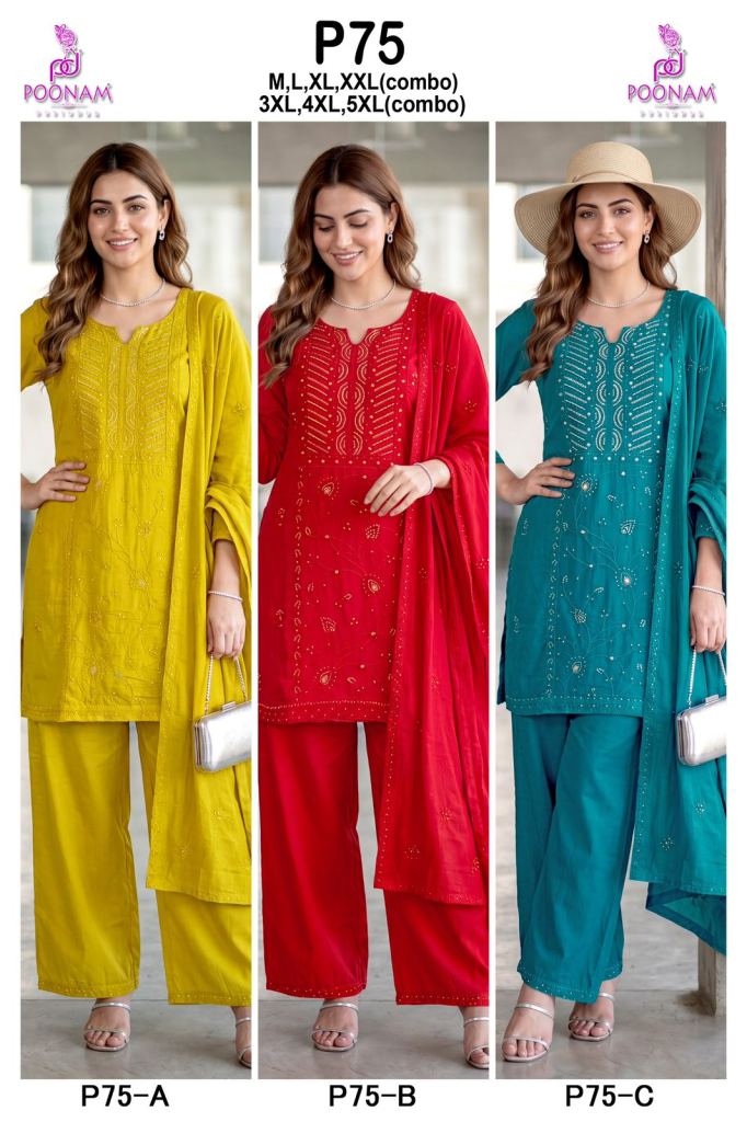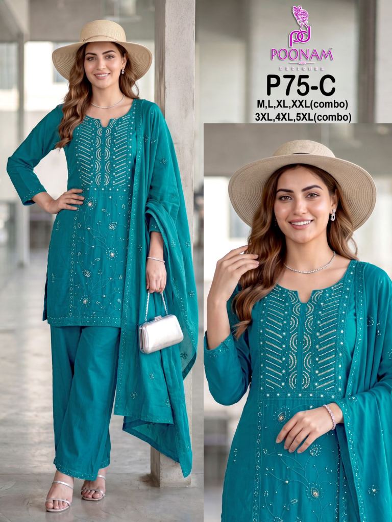 Poonam P 75 A To C Mal Cotton Beats Work Kurti With Bottom Dupatta Full Catalog