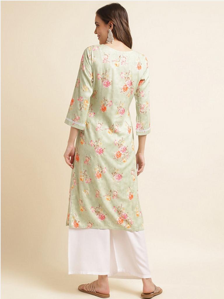 Prasuti Vol 3 Floral Printed Straight Kurtis Collection, this catalogue fabric is Poly Rayon Floral Printed and KurtI Length: 46" Sleeve Length: 16",