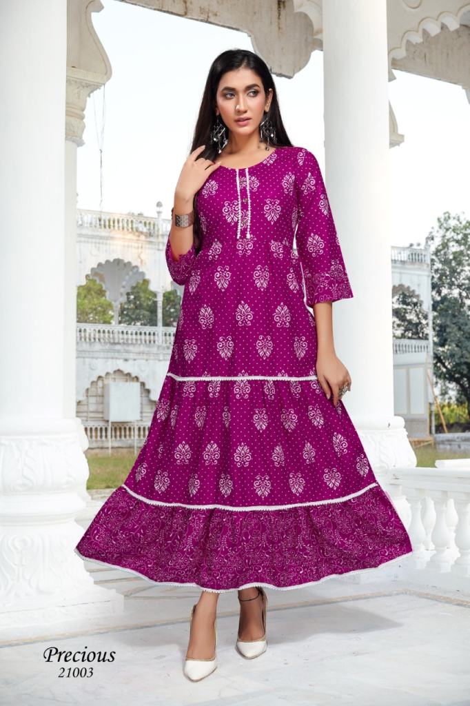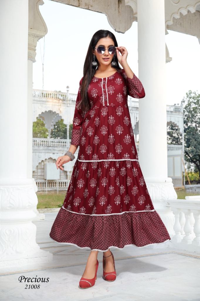 Premnath Precious Vol 3 Catalog Party Wear Rayon Anarkali Kurtis. In this set Kurti fabric is Rayon Prints Gagri Kurtis with Lace, Kurti length 48" And all design different and beautiful.