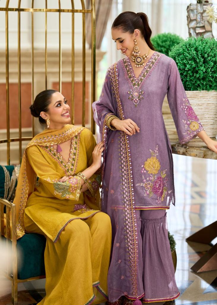 Prm Hamsafar Organza Crush Handwork Designer Kurti Pant Dupatta Full Catalog