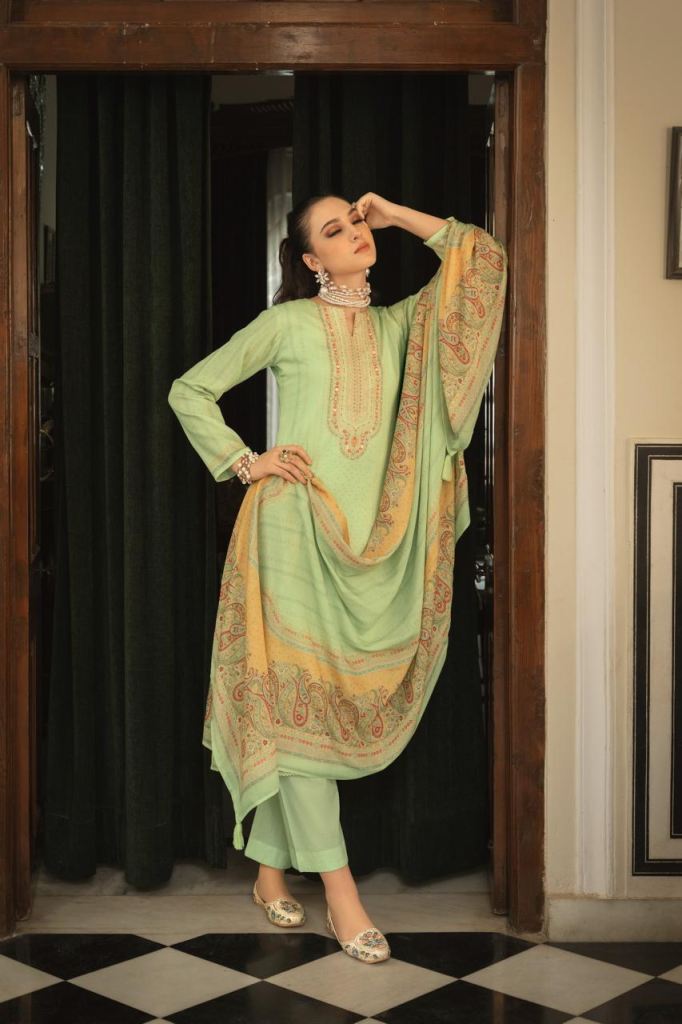 Fabric Description : Top :- Pure Jam Silk Digital Print With Fancy Handwork | Bottom :- Pure Cotton Solid | Dupatta :- Pure Viscose Muslin With Digital Print