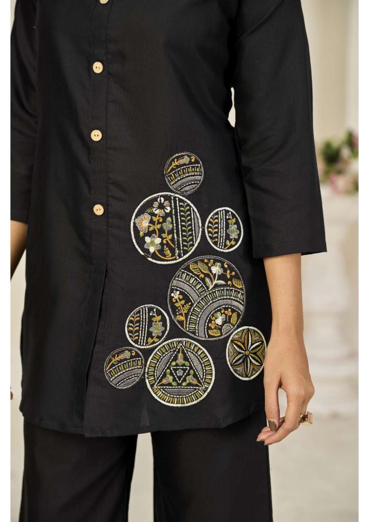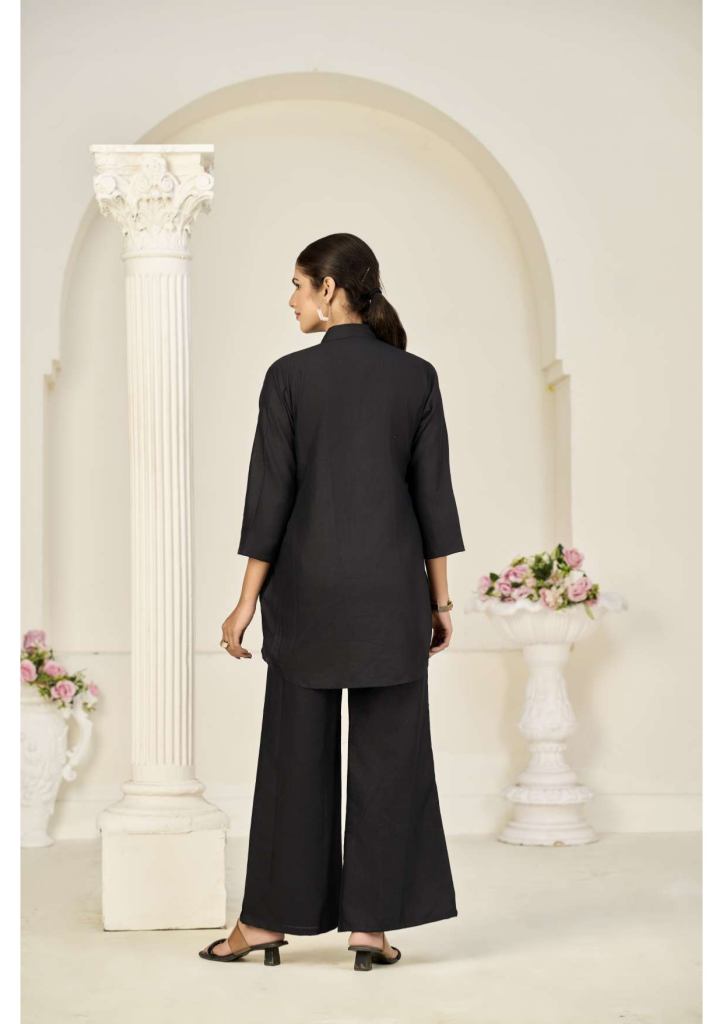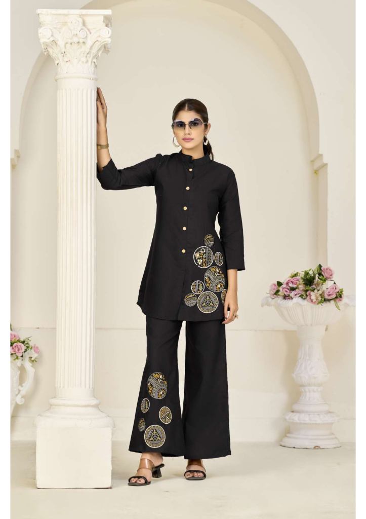 Fabric Description : Top :- Rayon Slub | Bottom :- Rayon Slub | Co Ord Set Work :- Heavy Embroidery Work | Bottom Work :- Heavy Embroidered | Sleeves :- Three Quarter Sleeves | Top Length :- 31 Inch | Bottom :- 39 Inch | Size Set :- (S To XXL)