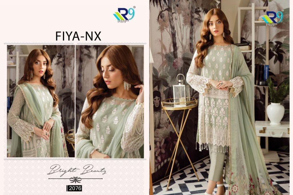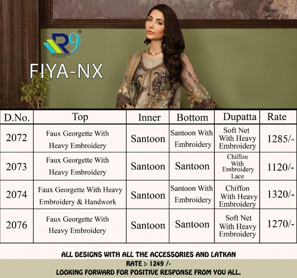 R9 Present Fiya Nx Pakistani suit catalog. this catalogue is salwar suit heavy Embroidery work in top and dupatta so beautiful look.