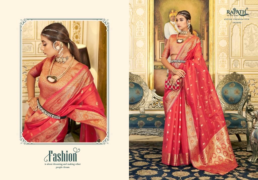 Shop Rajpath Radiance Organza Silk Copper Zari Weaving Saree Collection At Wholesale Rate