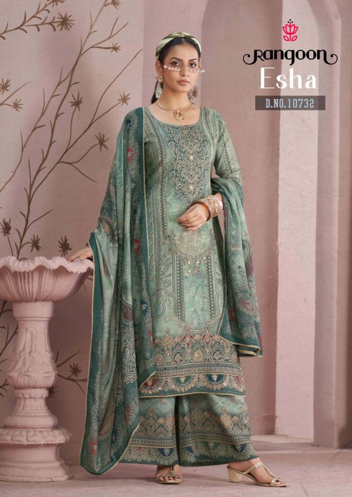 Rangoon Esha Muslin With Digital Printed Kurti With Bottom Dupatta Full Catalog