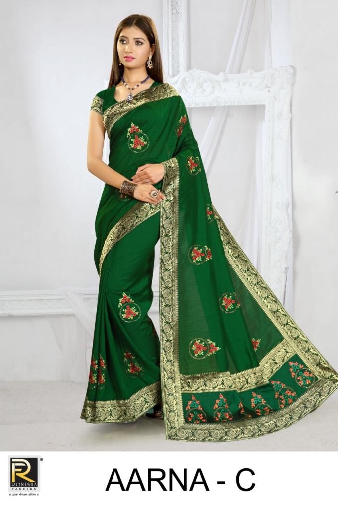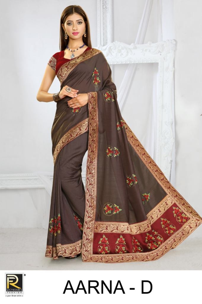 Ranjna presents Aarna Designer sarees collection, this catalog fabric is vichitra silk and the design are embroidery work