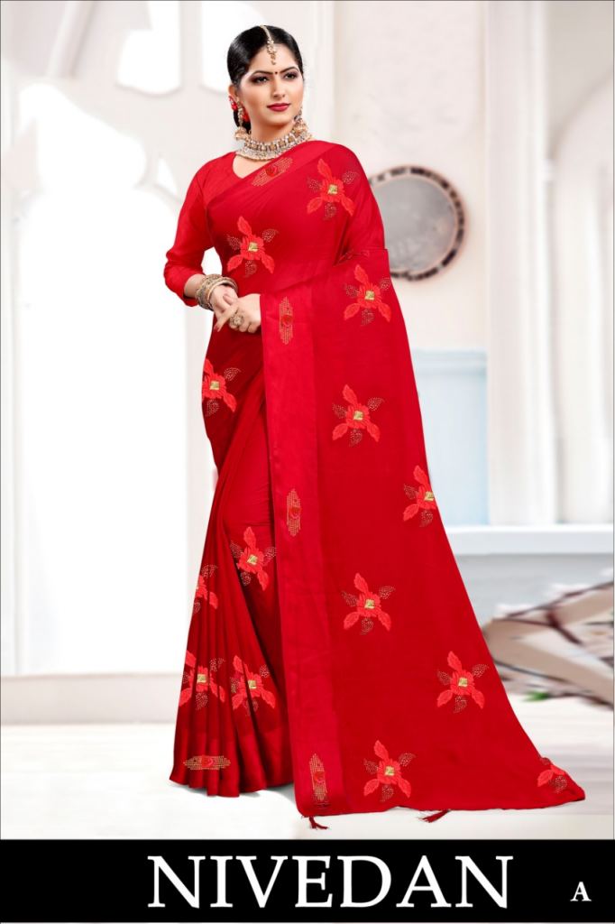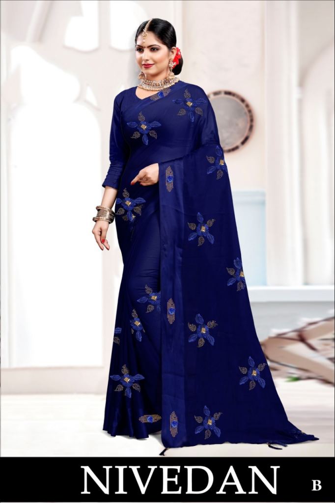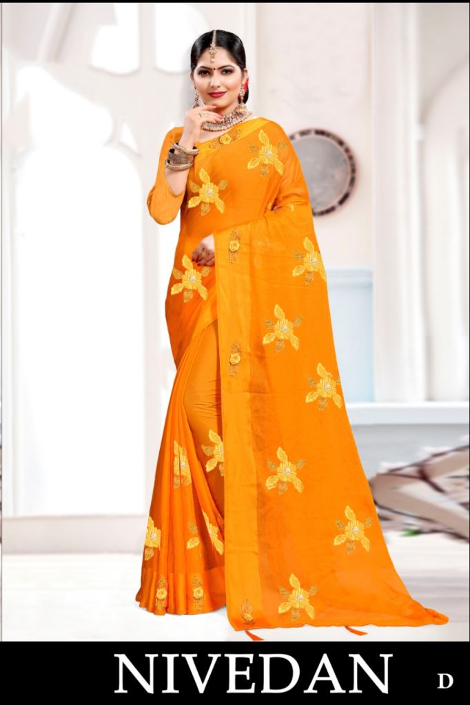 Ranjna presents nivedan Indian wear designer saree collection fabric Satin Patta, this catalog design are different with fancy work also.