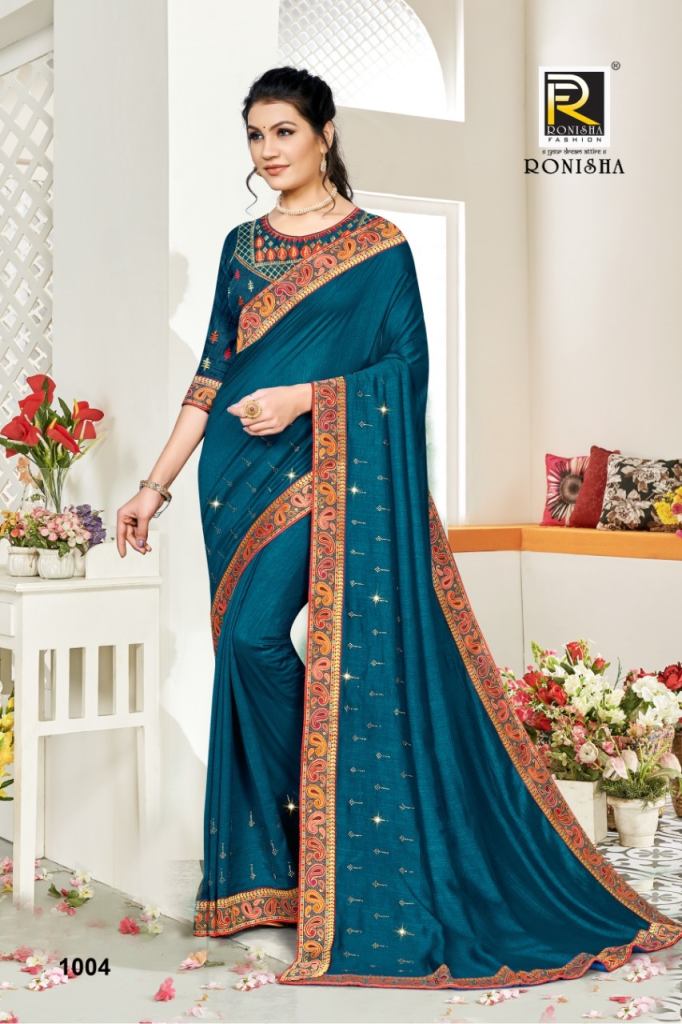 | NAME : | Ronisha Iconic Regular Wear Vichitra Silk Saree Wholesale |