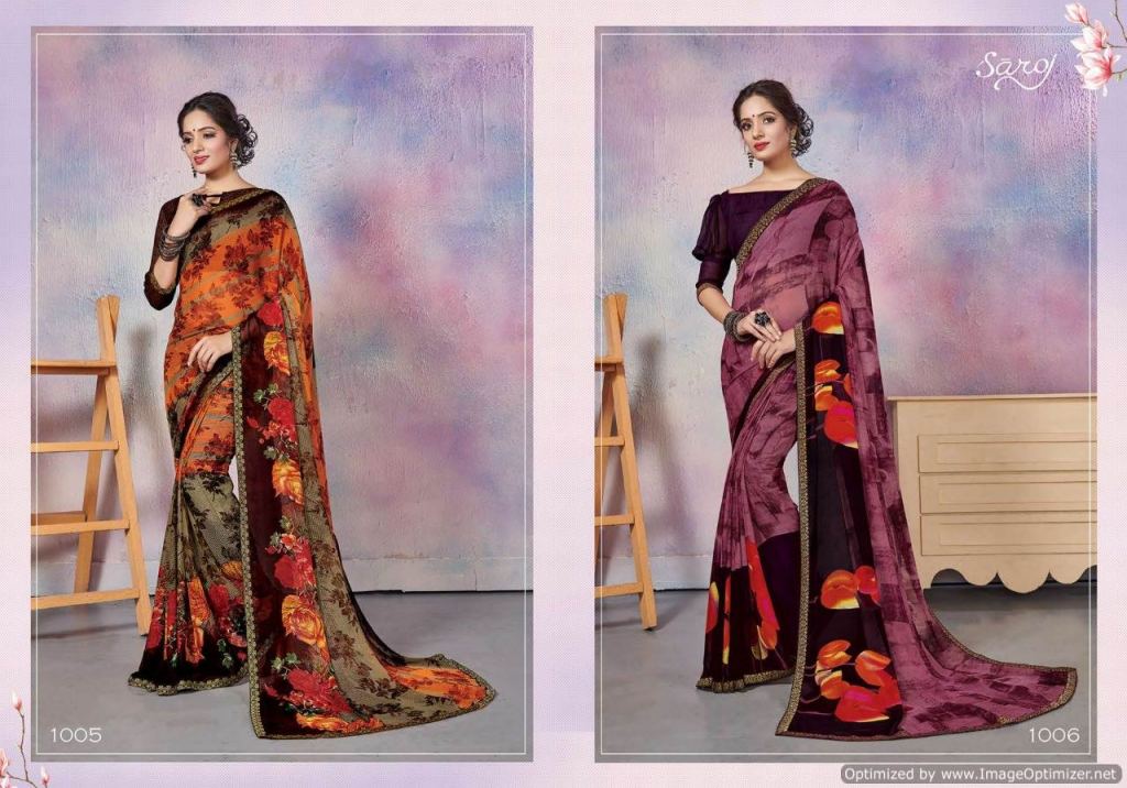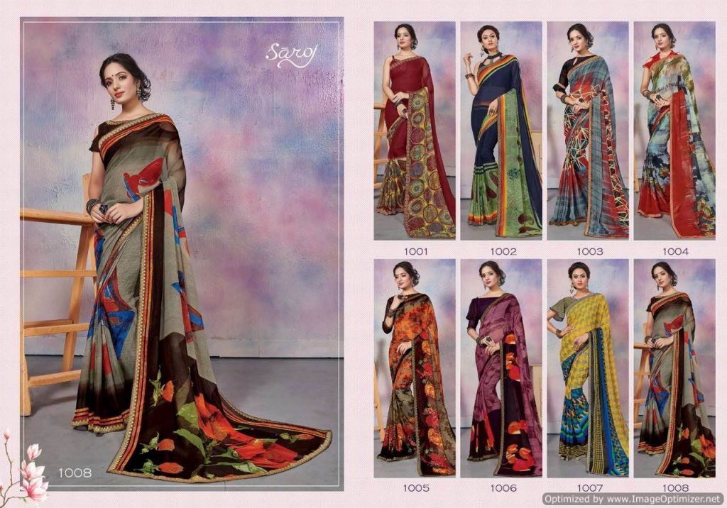 This is the collection of weightless Georgette sarees. sarees is available in different printed designs in different colours. this is casual wear collection of sarees.