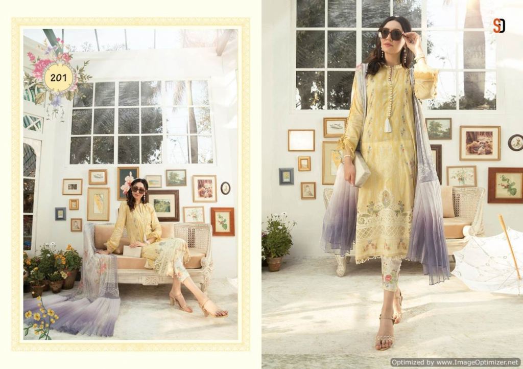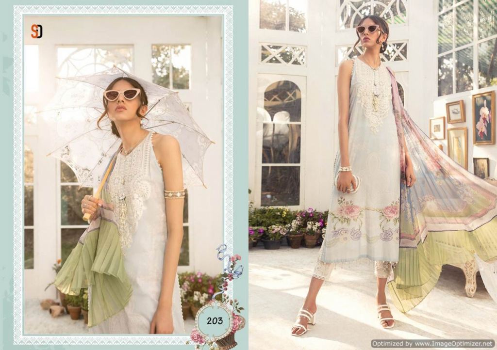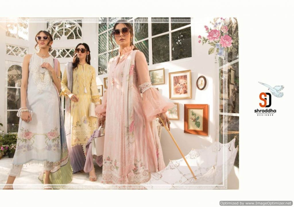 This is the collection of pakistani suits with digital printed and embroidery work in different colours and designs.The suit is with lawn cotton embroidered top with semi lawn cotton bottom and two matching chiffon printed dupatta.