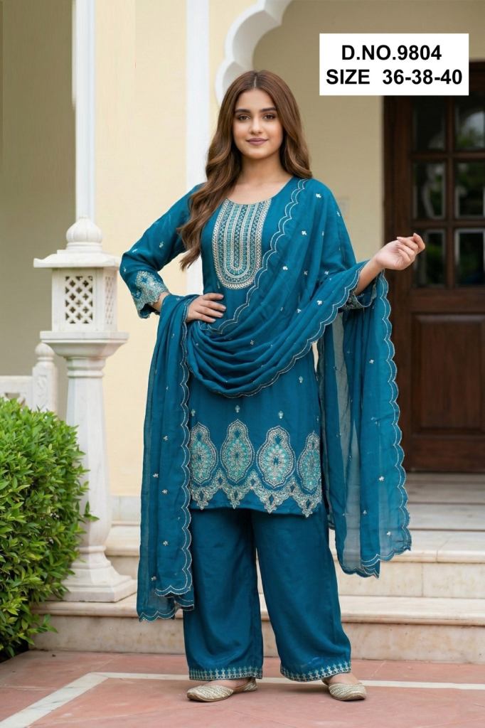 Fabric Description : Top/Bottom - Fendy Silk With Embroidery Work Dupatta | Size Set:- (36-38-40)
