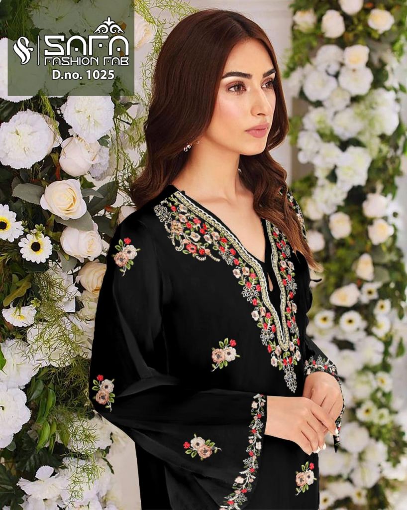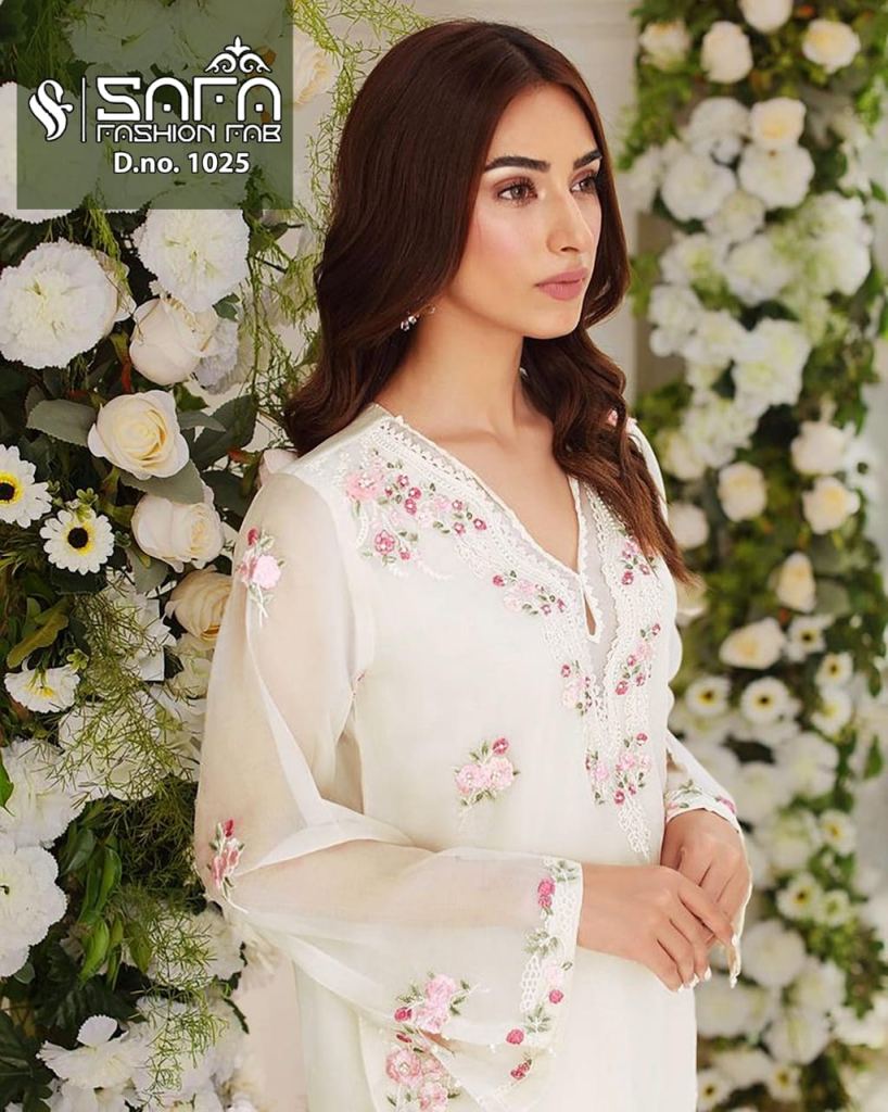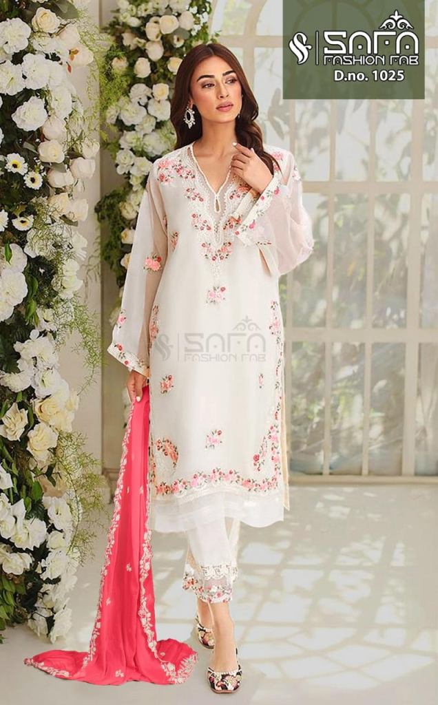 Safa Fashion 1025 Readymade Pakistani Suit Collection,thsi catalogue fabric is Heavy Georgette and Bottom fabric is Cotton Stretchable Fabrics with Inner Hevy Fabrics and the Dupatta fabric is Designer Dupatta Top XL Size Chest ( 42 ) Bottom XL Size ( 38 ).
