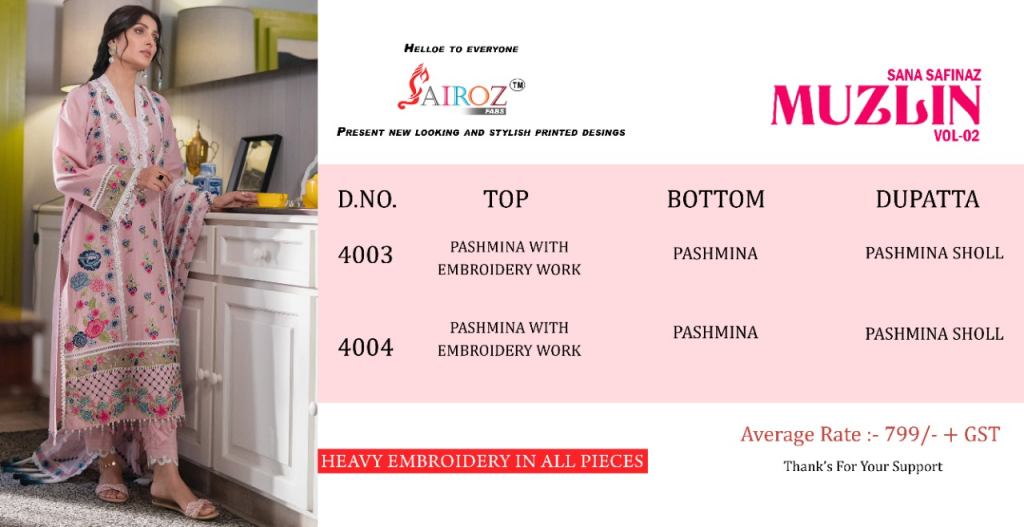 | NAME : | Sairoz Sana Safinaz Muzlin vol2 Pashmina Dress Catalog |