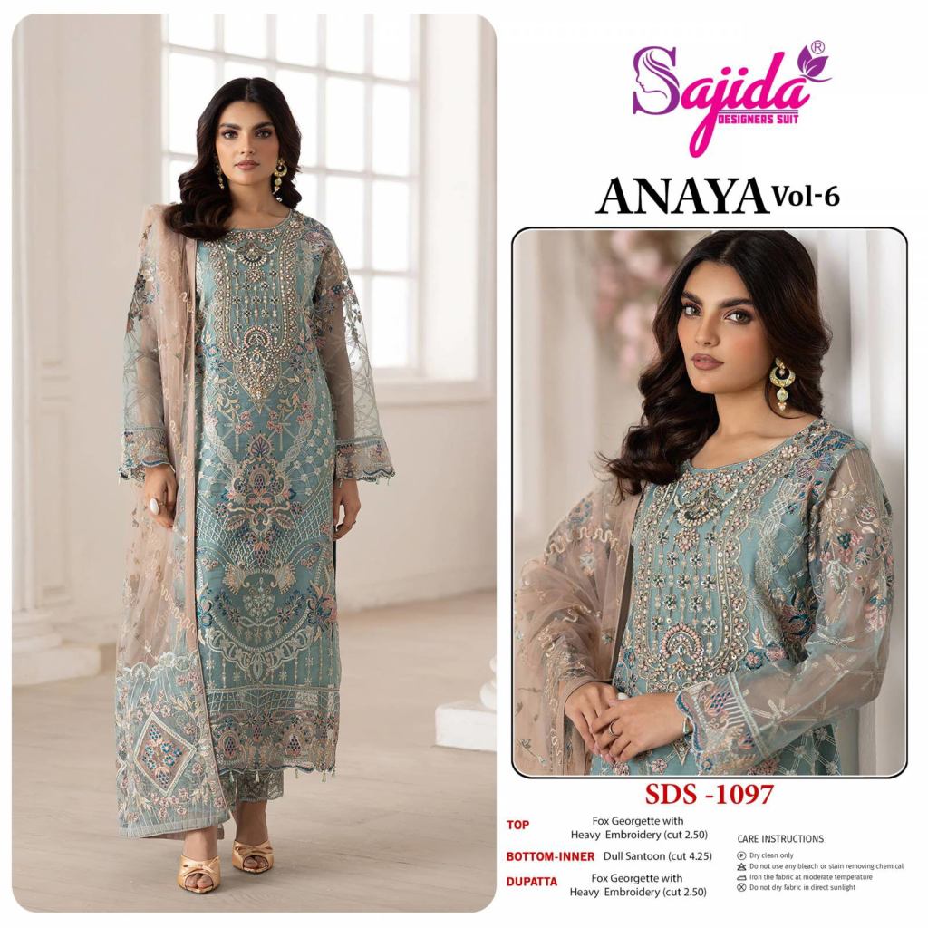 Sajida Anaya Vol 6 Georgette Embroidered Pakistani Salwar Kameez Suits Full Catalog