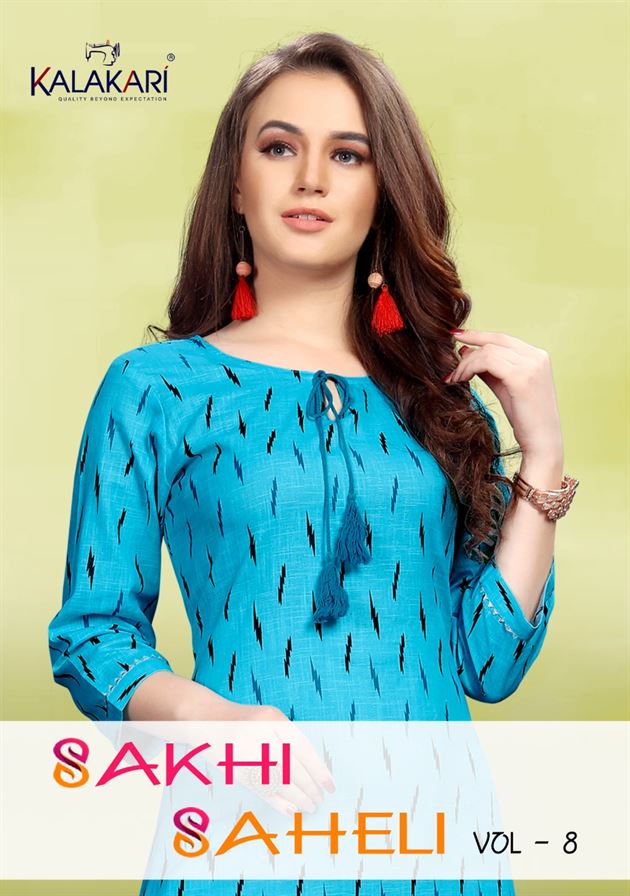 Sakhi Saheli Vol 8 By Kalakari Nx Kurtis With Plazzo Collection, this catalogue kurtis are various types of designs and plazzo are also designers. available at wholesale rate.