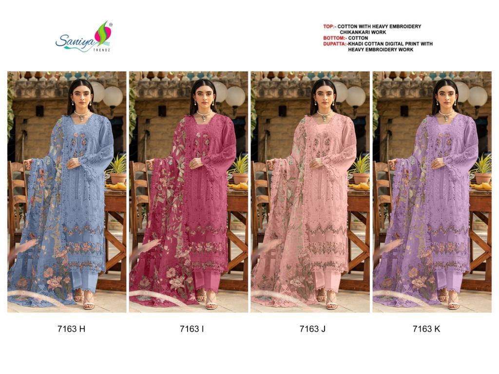 Saniya 7163 H To K Cotton With Heavy Embroidered Chikankari Work Salwar Kameez Full Catalog