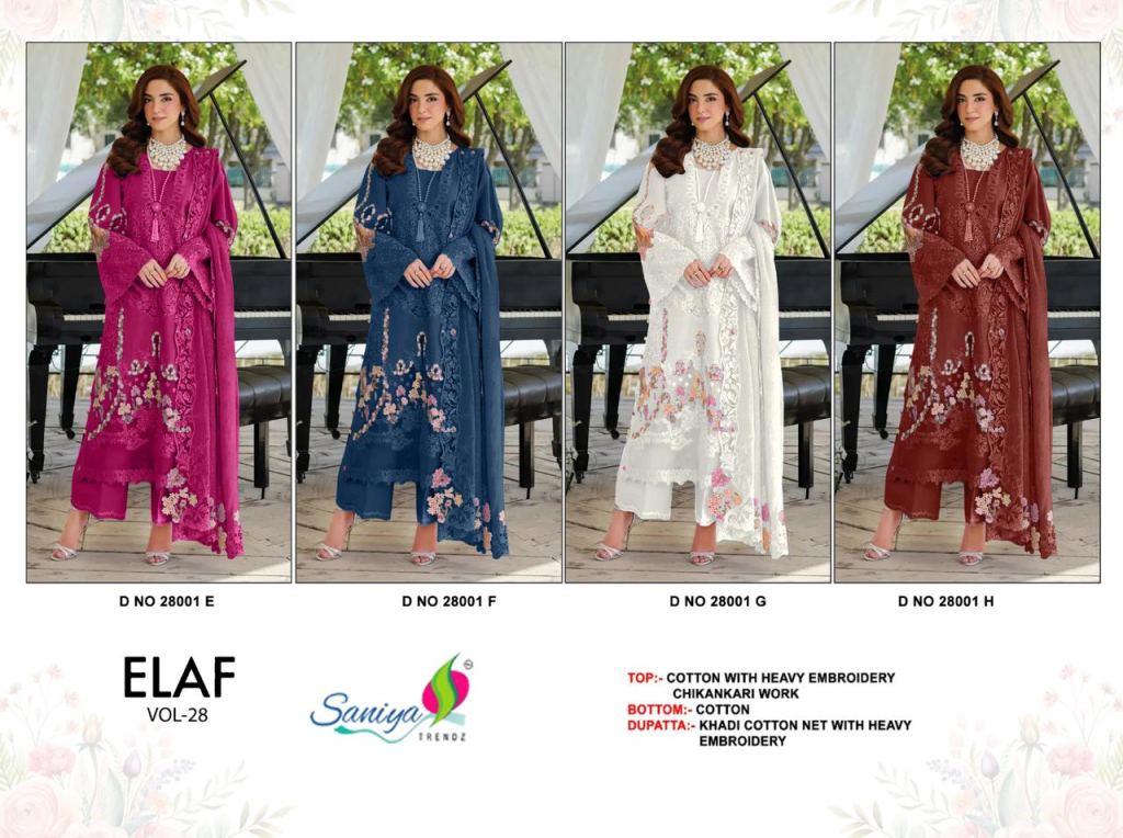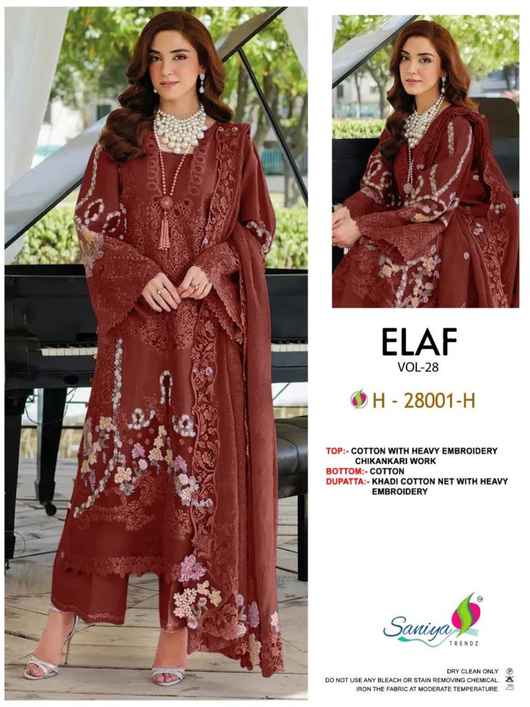 | NAME : | Saniya Elaf Vol 28 E To H Worked Pakistani Salwar Kameez |