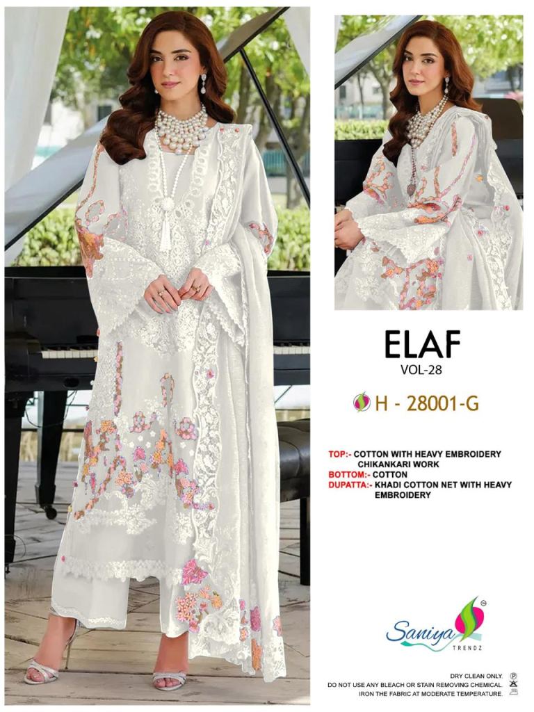 Saniya Elaf Vol 28 E To H Cotton With Chikankari Worked Pakistani Salwar Kameez Full Catalog