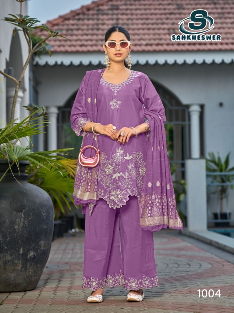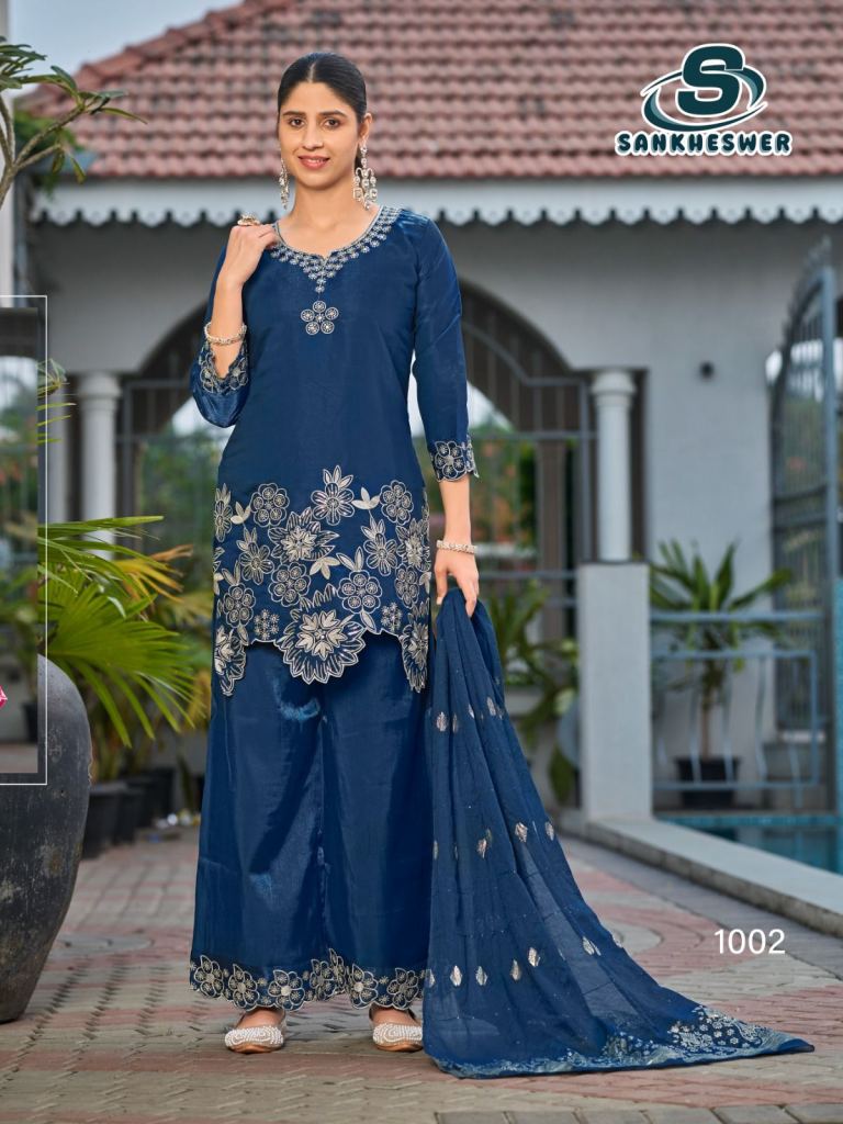 Sankheswer Kajal Roman Glass Silk With Fancy Work Top Bottom And Dupatta Full Catalog