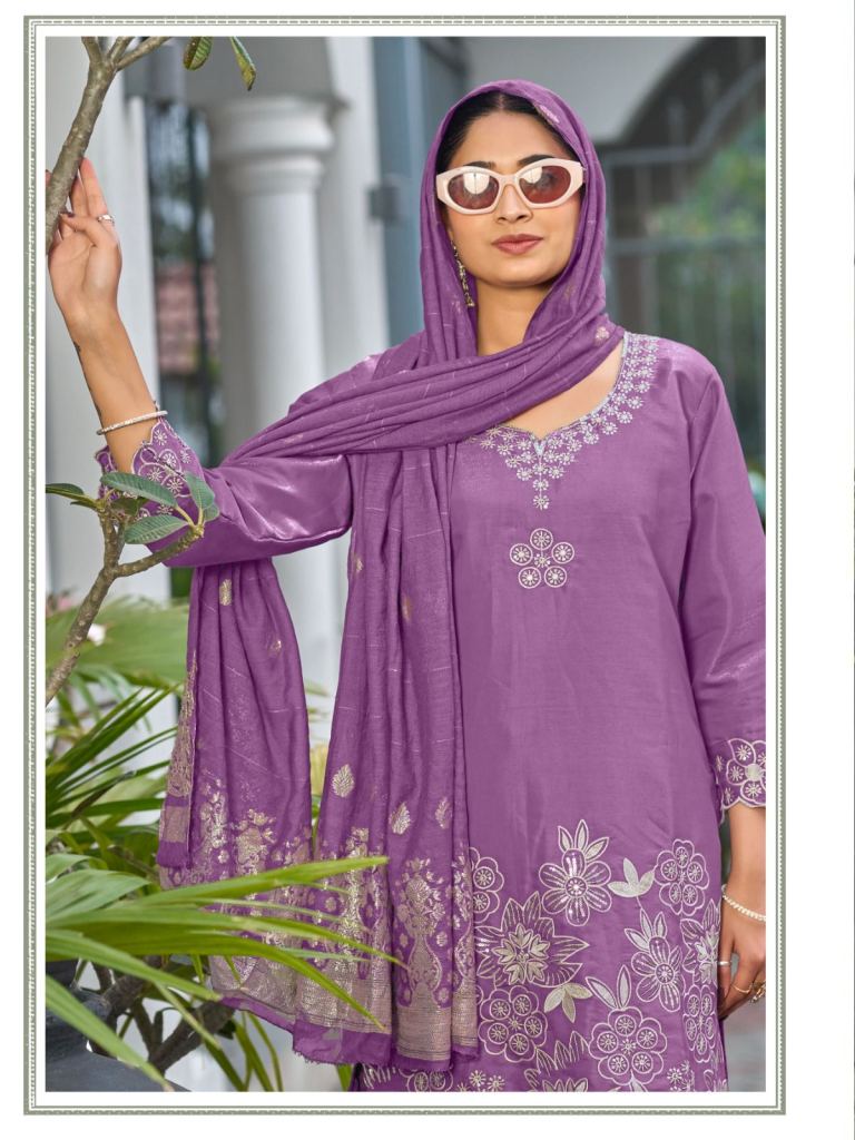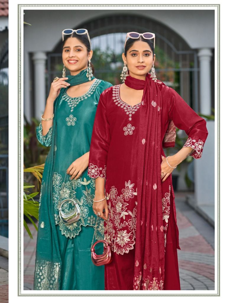 Fabric Description : Top :- Roman Glass Silk With Lining | Bottom :- Roman Glass Silk | Dupatta :- Viscose Chanderi Jacquard | Work :- Fancy Work Dori | Sleeves Length :- 3/4th | Length :- 42