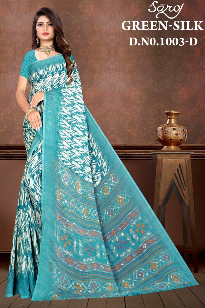 | NAME : | Saroj Green Silk 3 Regular Wear Printed Chiffon Saree Collection |