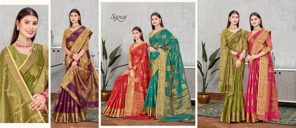 Buy Saroj Ishaani Vol 1 Festive Wear Soft Organza Saree Collection.
