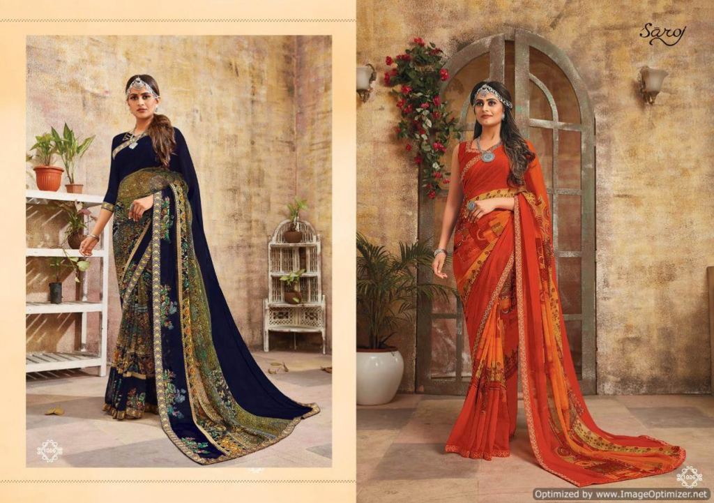 Saroj presents Blue Berry Casual Wear Saree Collection, this catalog fabric is georgette and pattern all are very fine.