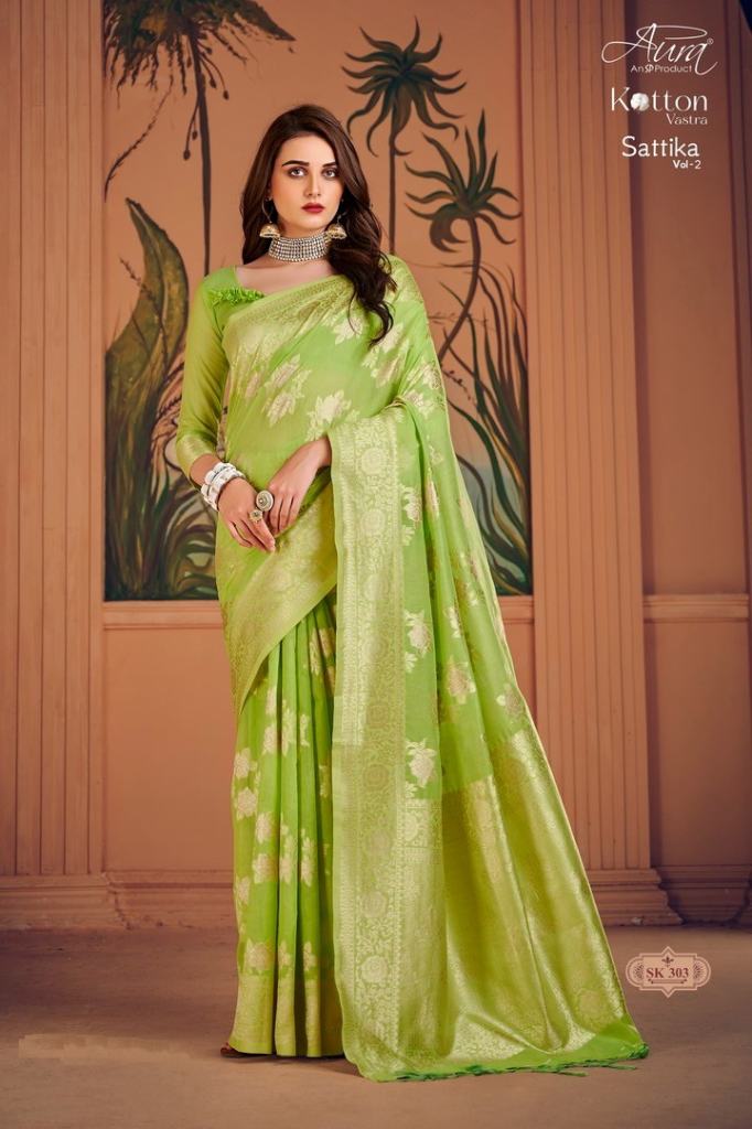 Sattika vol 2 Fancy Soft Cotton Saree Collection, this catalogue fabric is Soft Cotton Silk with Weaving full saree and Pallu and Border.