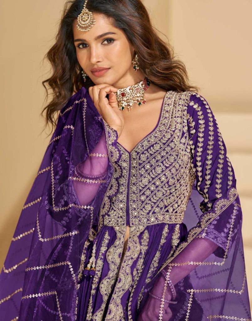 Fabric Description : Gown/Bottom/Dupatta :- Premium Real Chinon Silk ( Full Heavy Look Front And Back Embroidered Front Cut Floor Length Top Skirt And Embroidred Dupatta )