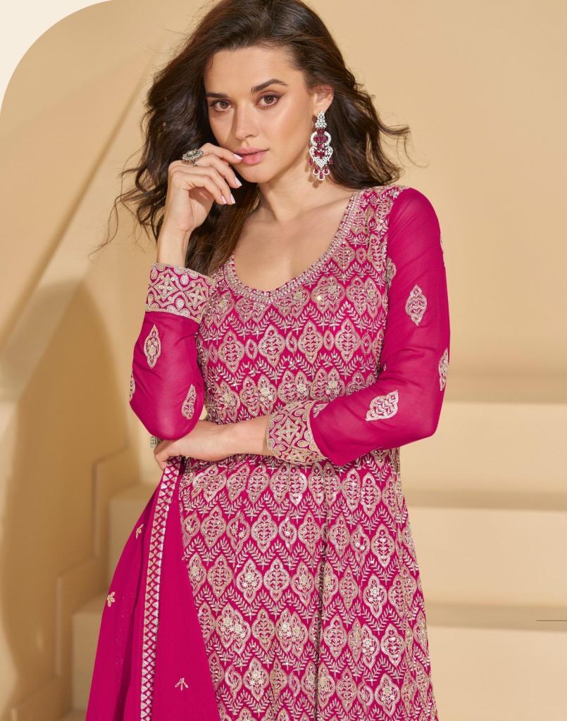 Fabric Description : Top/Bottom/Dupatta :- Real Premium Georgette (Full Heavy Look Embroidered Top With Embroidered Plazzo And Dupatta )