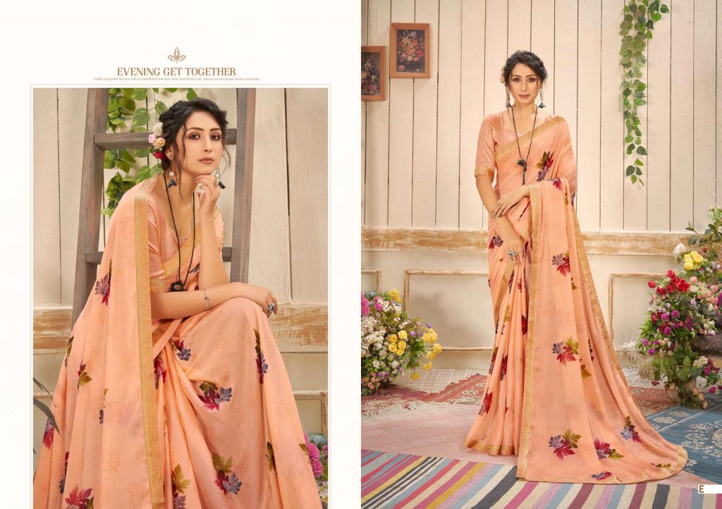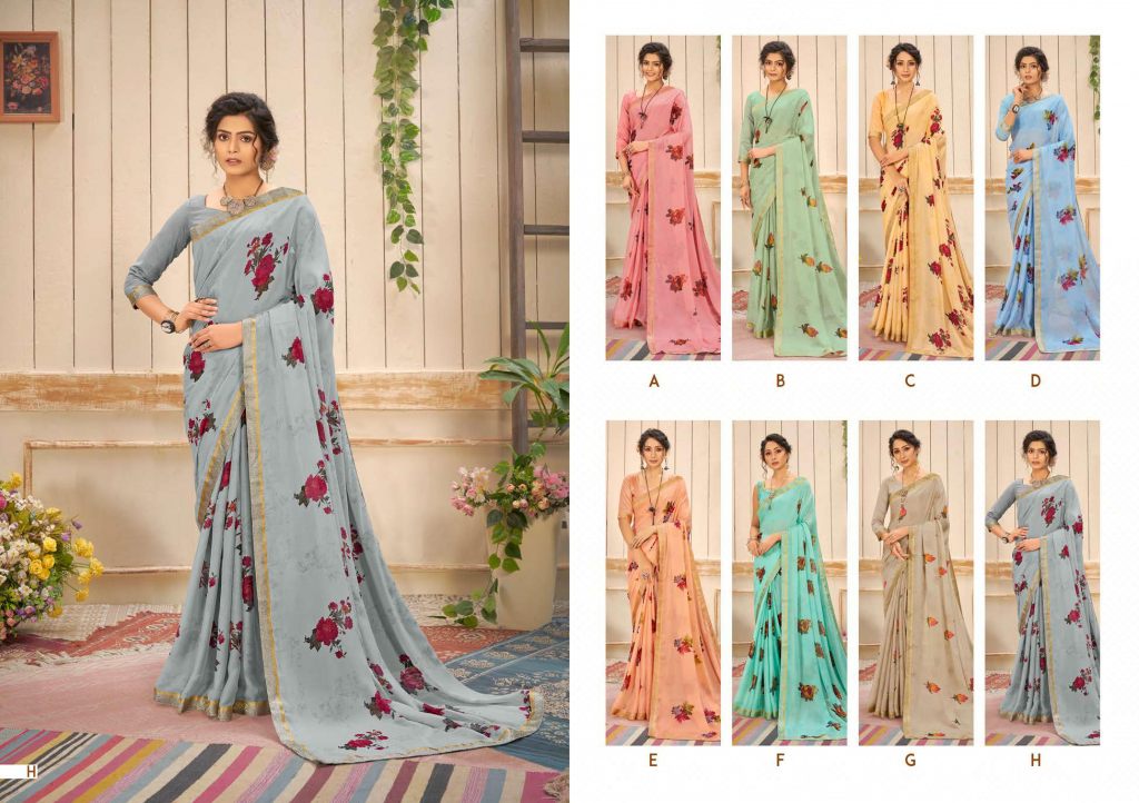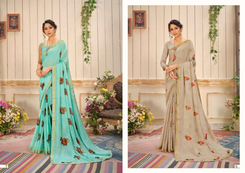 Shravya Niharika Designer Printed Casual Wear Saree catalog, this catalog fabric is WHITE CHINA WITH FANCY LACE (6.30 Mtr)this catalog is sarees single in color with inside some of the flower designs and borderline lace-like border and very fine look. sarees are blouses the same as a sarees color. this catalog is sarees very fine print designs in full of the part and that are types of flower look, blouse are mix in color and print designs also.