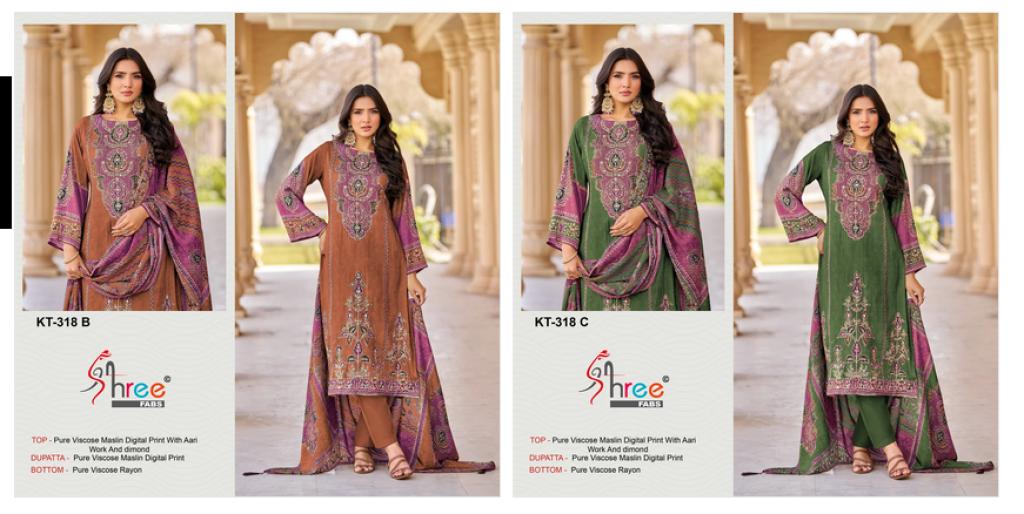 Shree Kt 318 B And C Viscose Maslin Digital Printed Salwar Kameez Collection Full Catalog