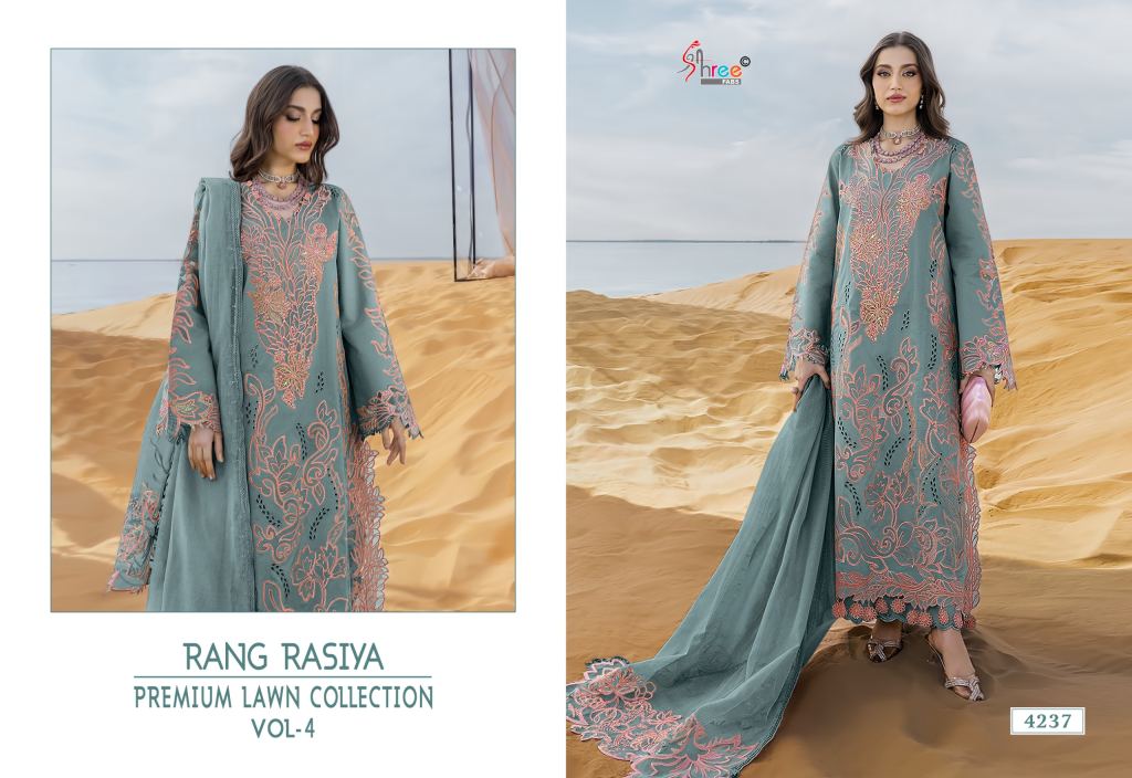 Shree Rang Rasiya Premium Lawn Vol 4 Kota Doriya Dupatta Cotton Embroidered Salwar Suit Full Catalog