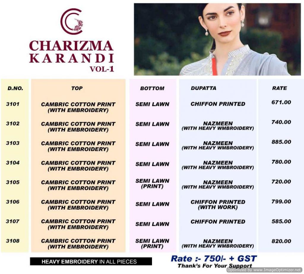 | NAME : | Shree Charizma Karandi 1 pakistani suit set |