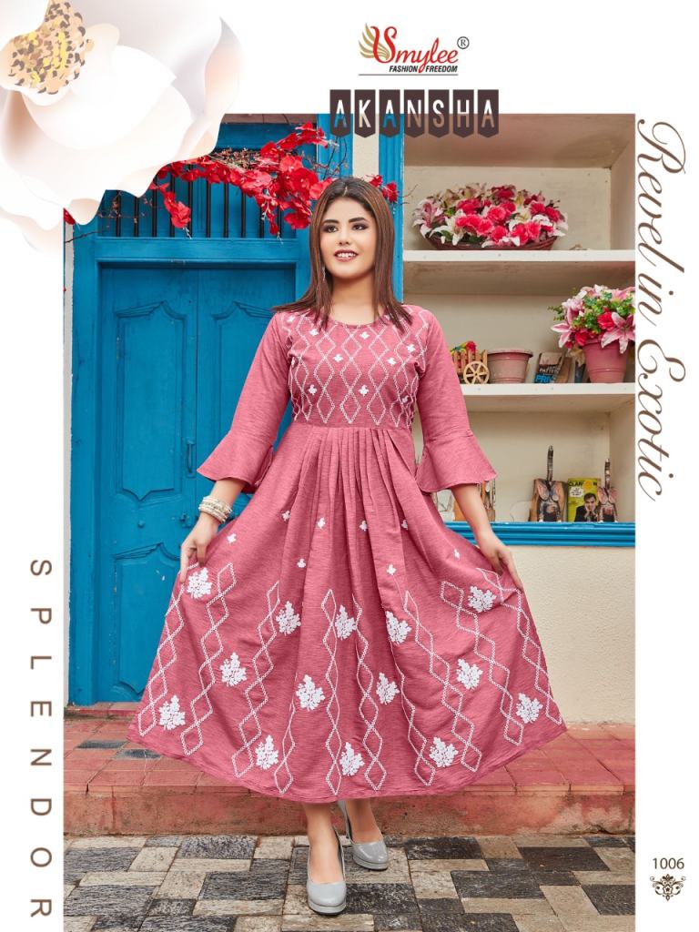 Smylee Akansha Catalog Party Wear Long Anarkali Kurtis.