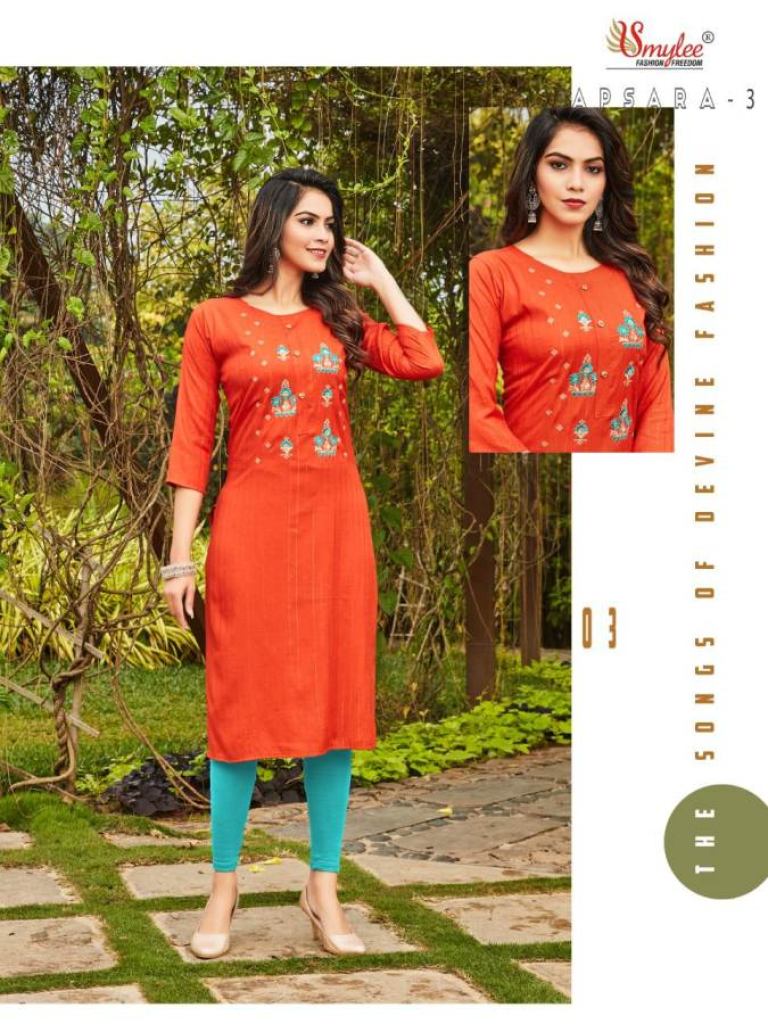 Smylee Apsara Vol 3 Heavy Rayon Designer Kurtis Catalog.