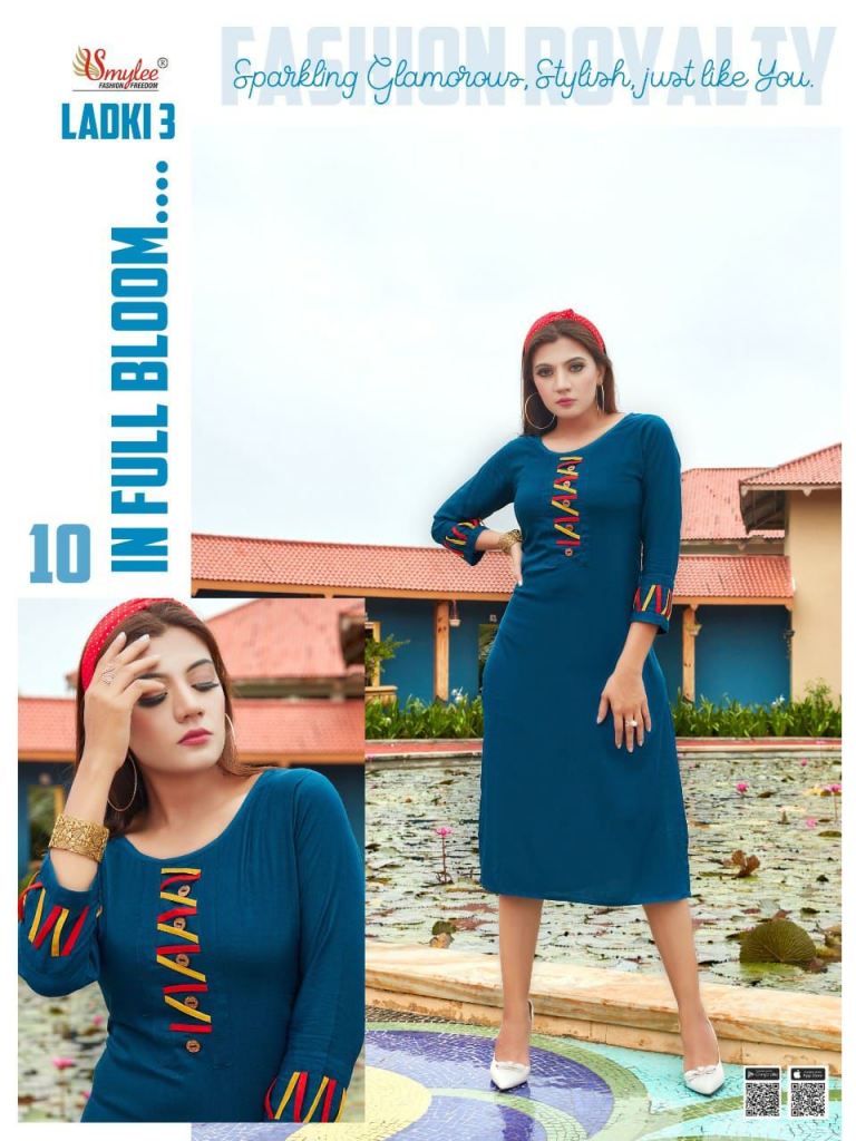 | NAME : | Smylee Laadki vol 3 Ethnic Wear Rayon Designer Kurti catalog |