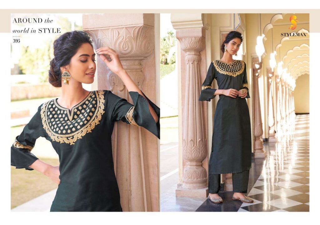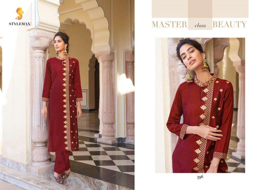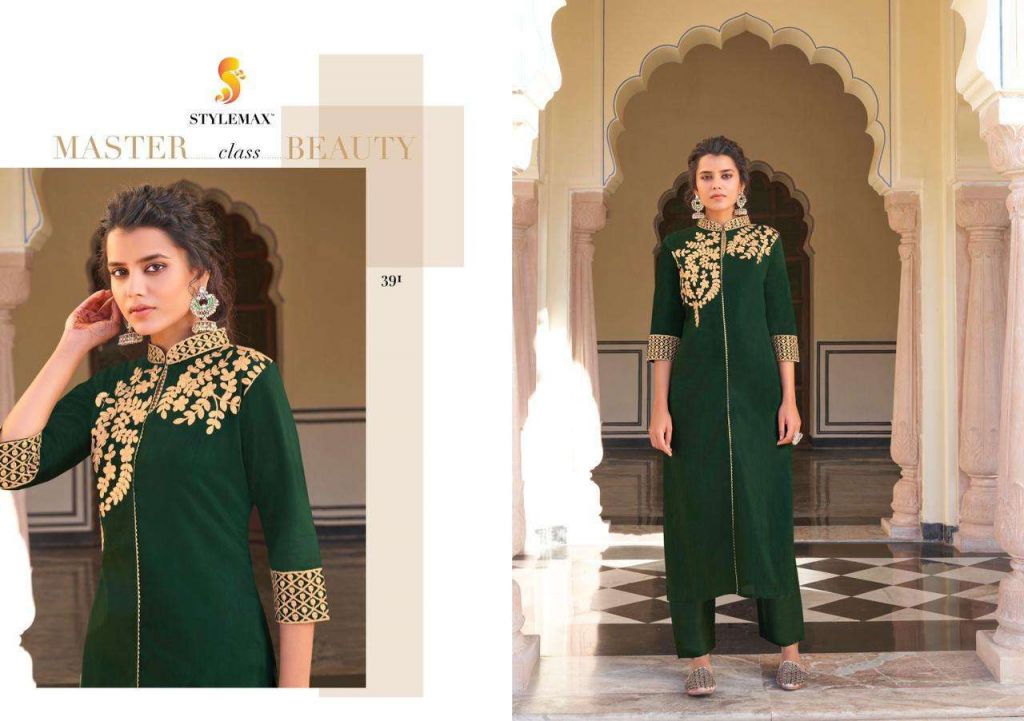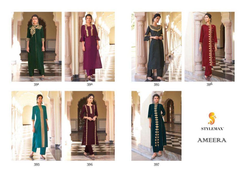 Stylemax Ameera Vol 1 Viscose With Embroidery Work Kurti With Bottom Kurtis Catalog, this catalog fabric is Pure Viscose Santoori With Embroidery | Work: Heavy Embroidery, Bottom Fabric: Pryor Viscose Santoori With Plazo Stich.