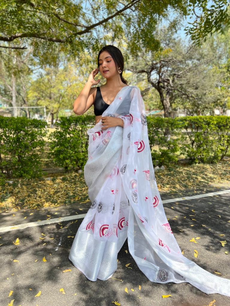Sunflower Fancy Wear Organza Wholesale Saree collection, this collection Organza and Zari And Embroidery Work and Blouse Will Come In Satin Banglori Fabric Black In All Saree.