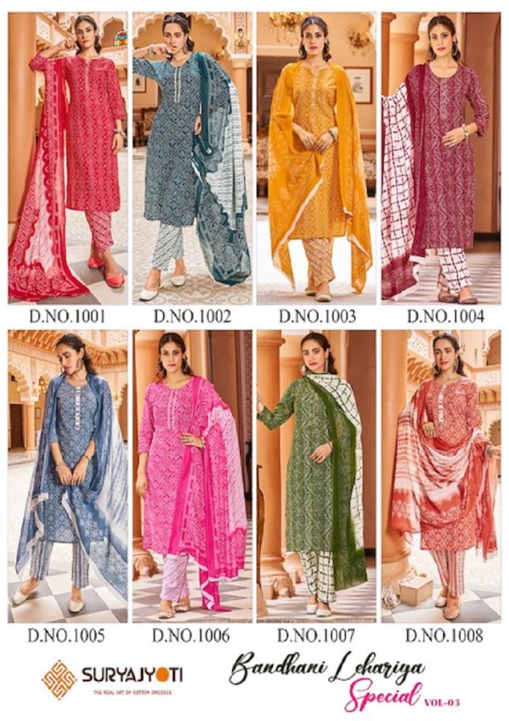 Buy Suryajyoti Bandhani Lehariya Special Vol 3 Designer Pure Cotton Dress Material.