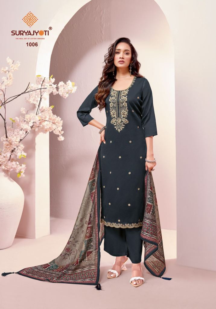 Suryajyoti Pranavi Vol 1 Jam Satin With Embroidered Kurti With Bottom Dupatta Full Catalog