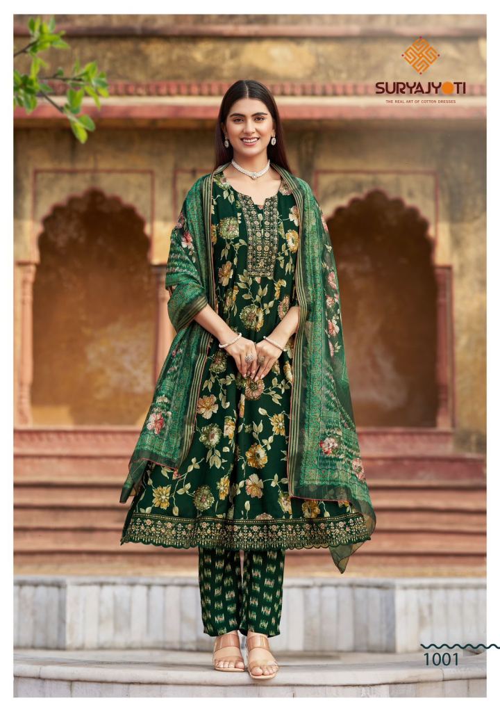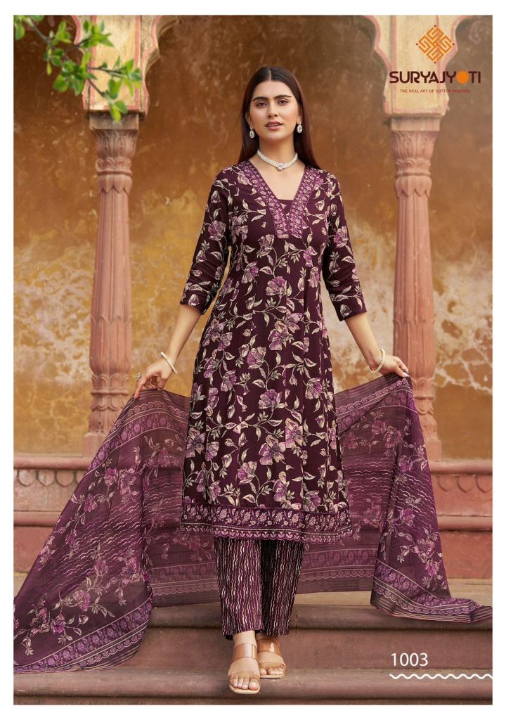Suryajyoti Raahi Vol 1 Rayon Print With Embroidered Kurti With Bottom Dupatta Full Catalog
